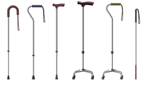 A cane is a simple mobility aid consisting of a single shaft with a handle at one end and a rubber tip at the other. It provides support and stability to individuals who have difficulty walking.