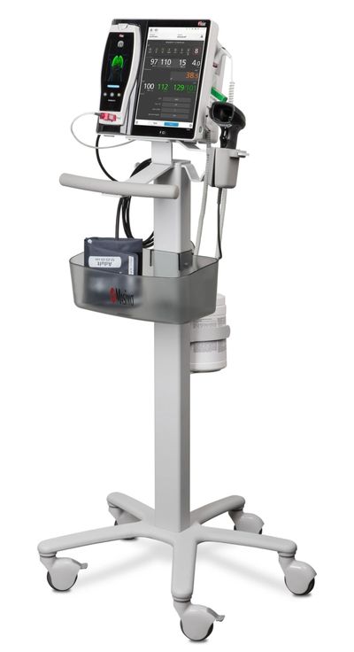 Vital sign monitors are tools used by doctors and nurses to check important body functions like heart rate, blood pressure, temperature, and oxygen levels. They help keep track of how healthy a person is and if there are any problems that need attention.