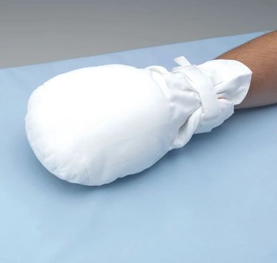 Hands mitts are used to prevent a patient from pulling tubes/lines, IVs, foleys, G-tubes, trachs. They can also be used to prevent patients from scratching excessively, especially at incisions.
