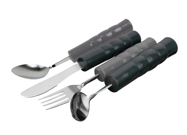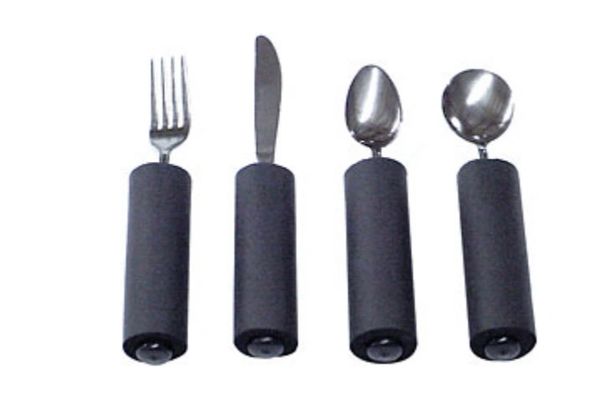 Extended silverware to assist with individuals who have limited range of motion.
