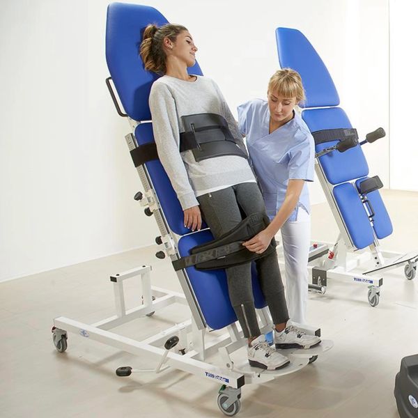 Tilt tables are medical devices used in rehab and hospitals to help patients gradually transition from lying down to standing up. They have a surface that tilts upward, allowing patients to be positioned at different angles, which helps improve circulation, muscle strength, and overall mobility.