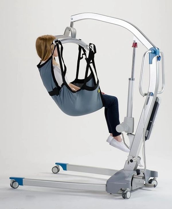 A Hoyer lift is a mechanical device used to assist caregivers in transferring patients who have limited mobility or are unable to move independently. It typically consists of a metal frame with a sling attached to a lift mechanism. The sling is placed under the patient, who is then lifted and moved using the lift system, reducing strain on caregivers and minimizing the risk of injury to both the patient and the caregiver during transfers. Hoyer lifts are commonly used in hospitals, nursing homes, and home care settings to safely move individuals between beds, wheelchairs, and other surfaces.