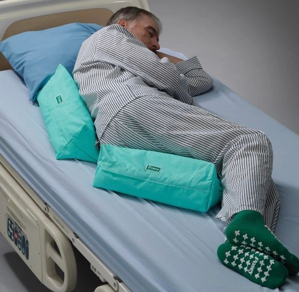 Positioning pillows are special pillows used in rehab and hospitals to help patients maintain a comfortable and safe position while they recover from injury or surgery. They are designed to support specific body parts, such as the head, neck, back, or limbs, to prevent pressure sores, reduce pain, and promote proper alignment during rest or therapy.