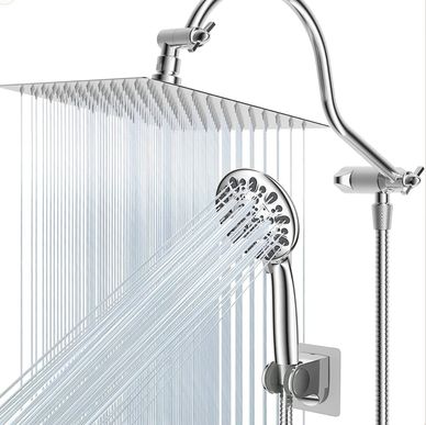 A shower head that is hooked to a cord and can be taken down by the individual while showering. Useful for people who need to bathe/shower while they are sitting.